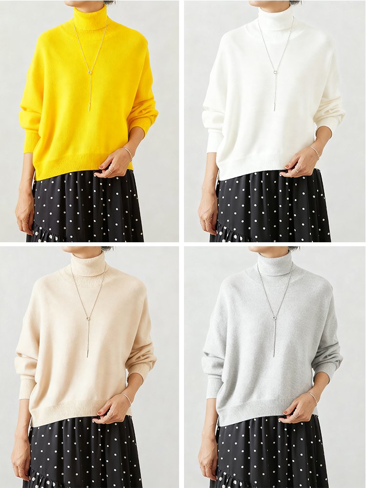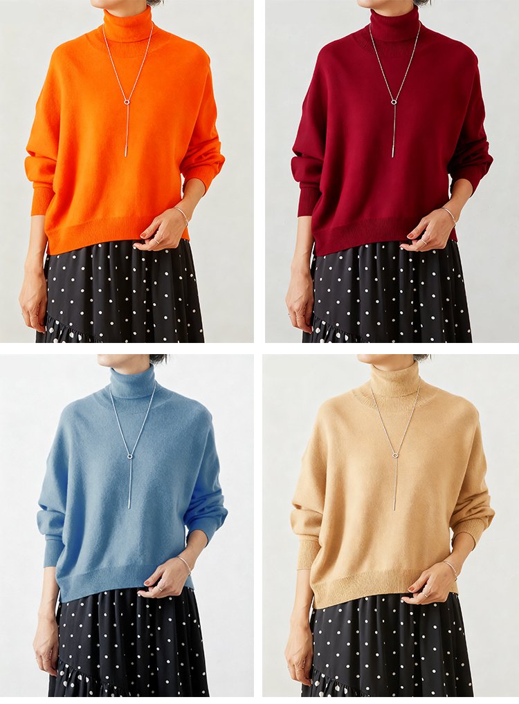 タートルネック ドルマンスリーブ ニット 着用イメージ