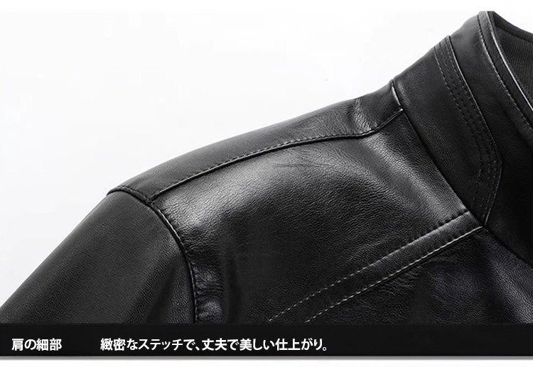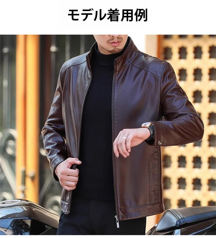 プレミアムスタンドカラーレザージャケット メンズ正面画像