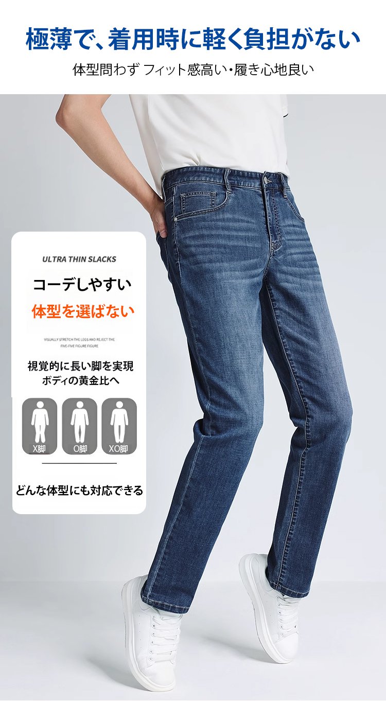 通気性と伸縮性に優れたメンズストレッチデニムパンツ