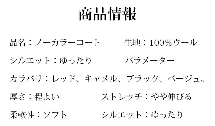 高品質素材のノーカラーコート