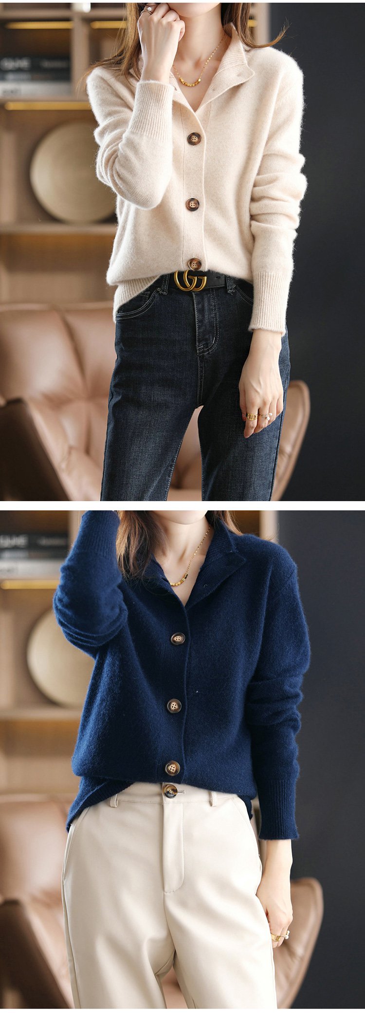 秋冬向けカシミヤニットのコーディネート例