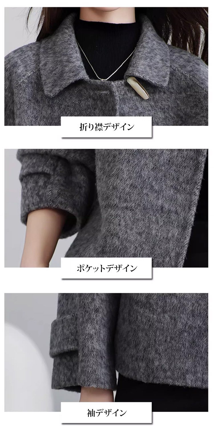 ショート丈ウールコート 秋冬 ショート丈 厚手保温 吸湿 通気 おしゃれ 防寒防風 着痩せ 肌に優しい あたたかい 超柔らかい ウールコート