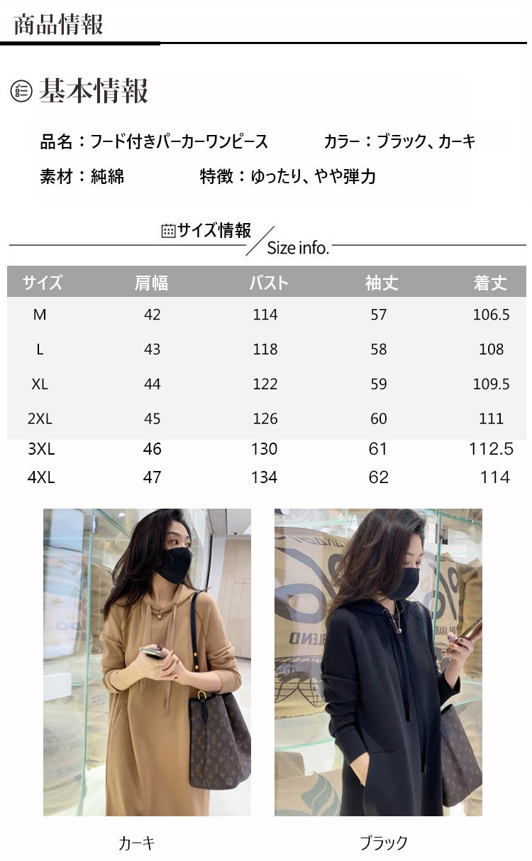 2024年秋新作フード付きパーカーワンピース全体画像