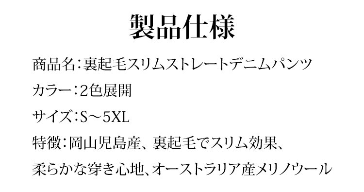 【岡山児島製】裏起毛スリムストレートデニムパンツ