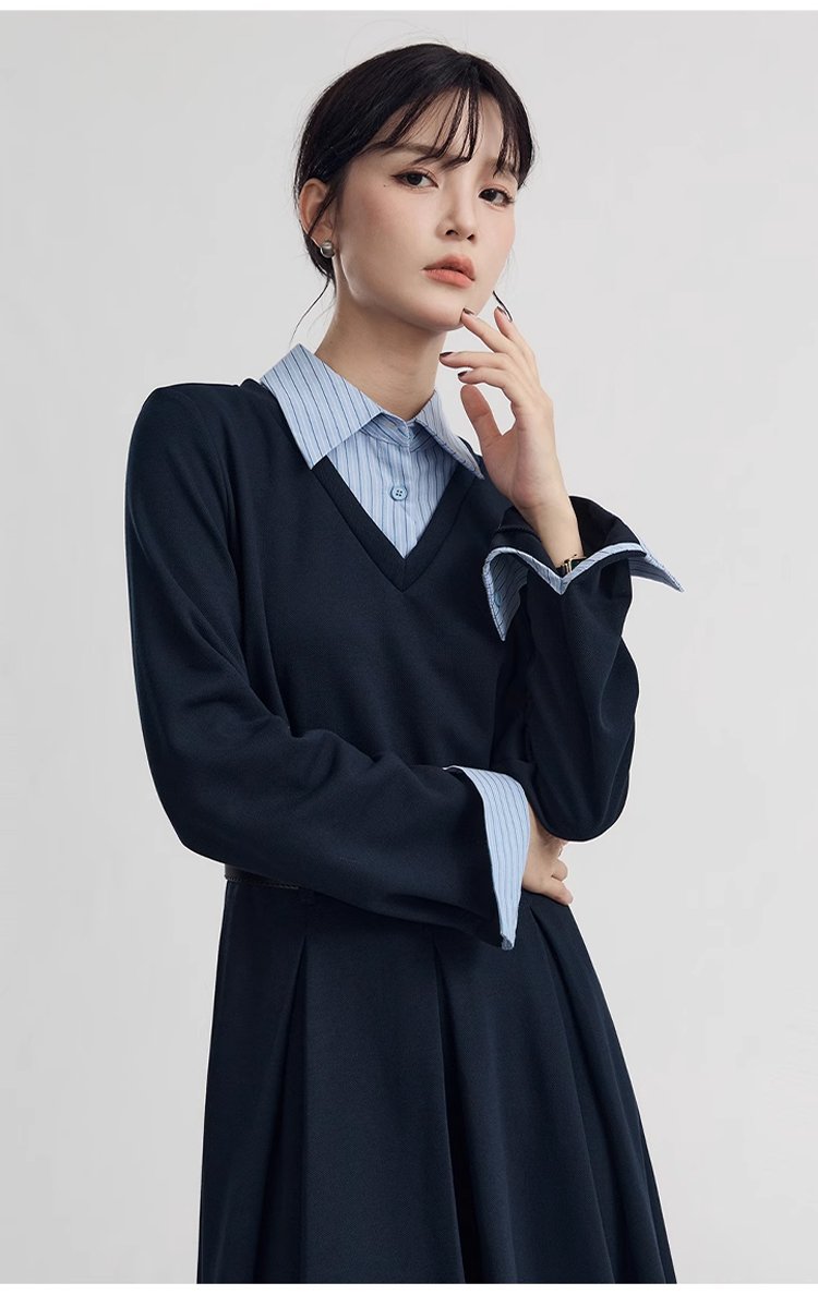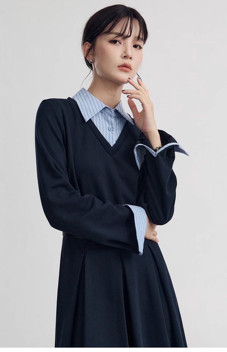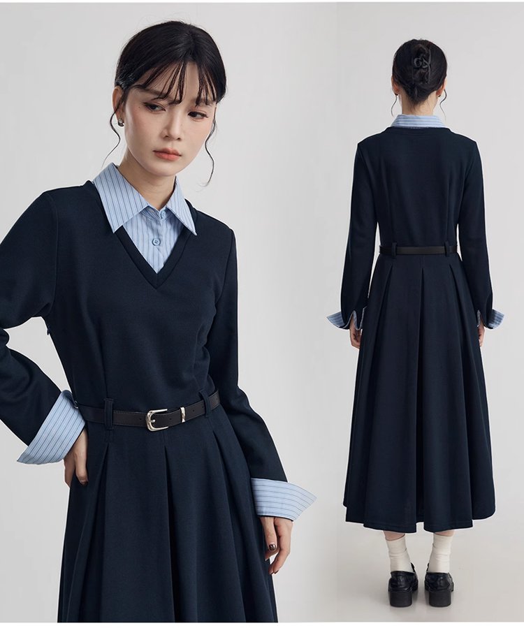 韓国風レイヤードスタイルスウェットワンピース