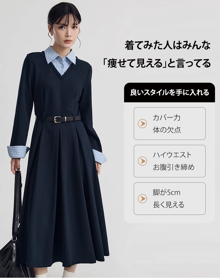春秋冬に活躍する韓国風ワンピースコーディネート