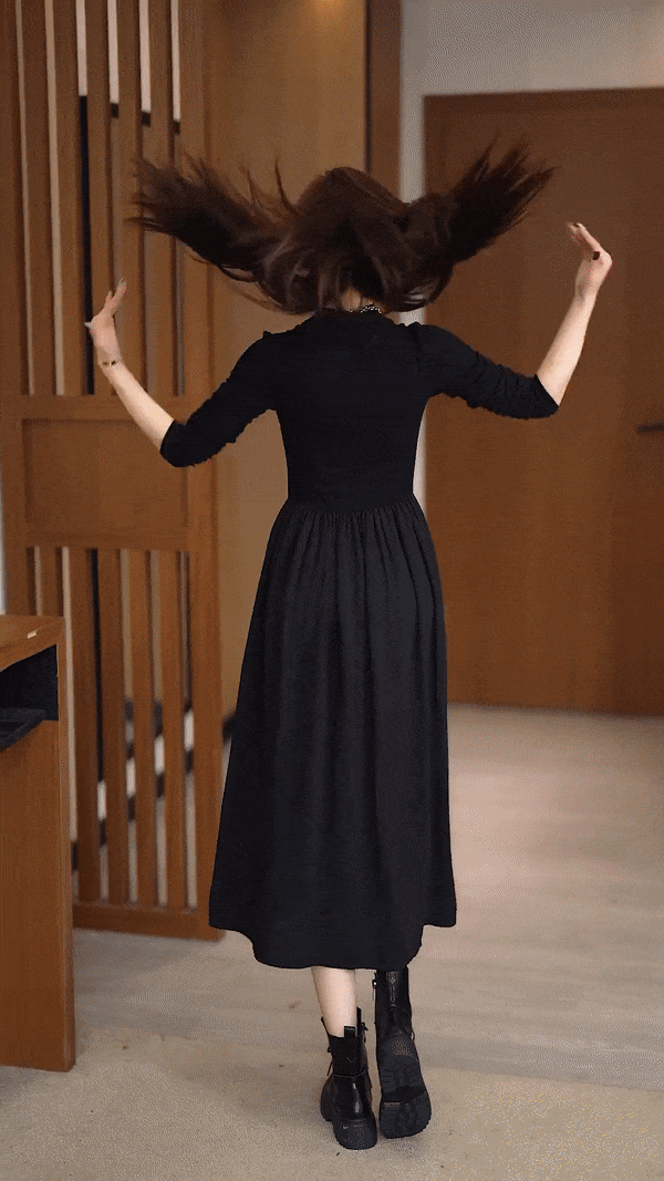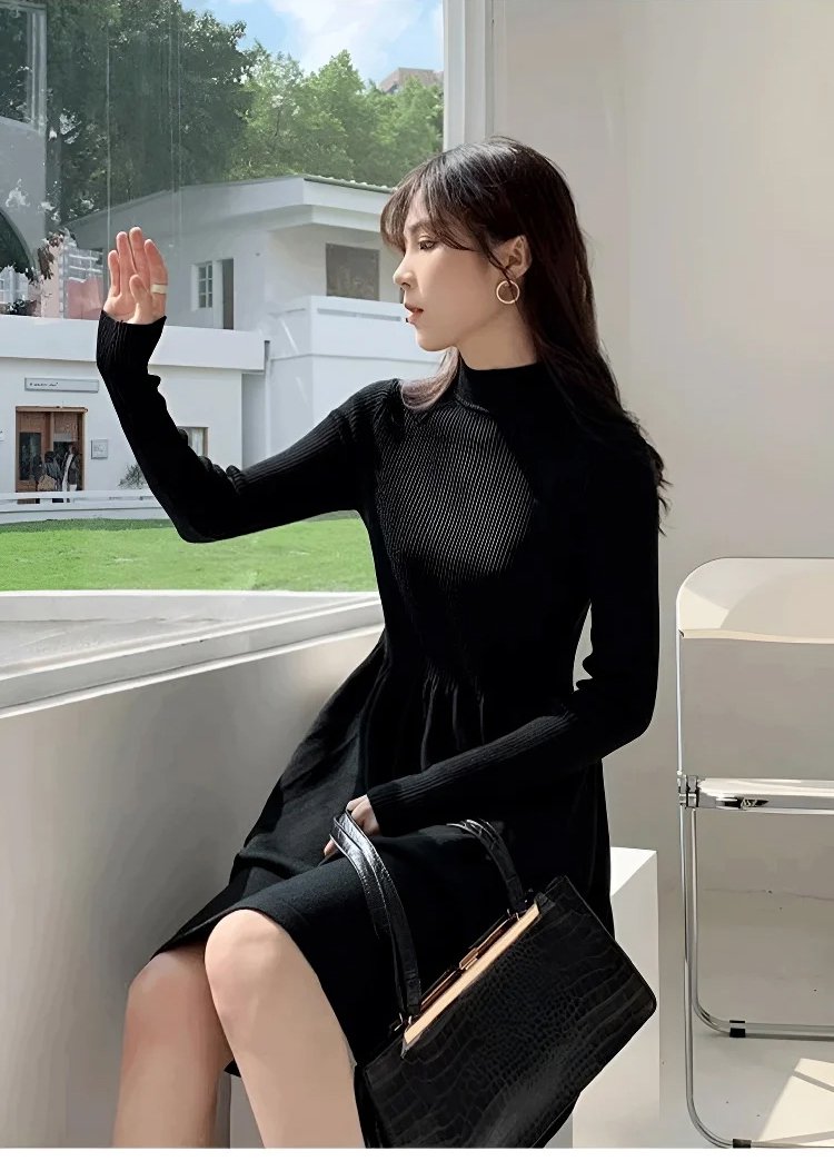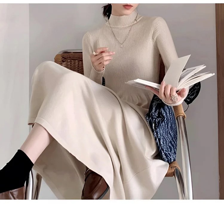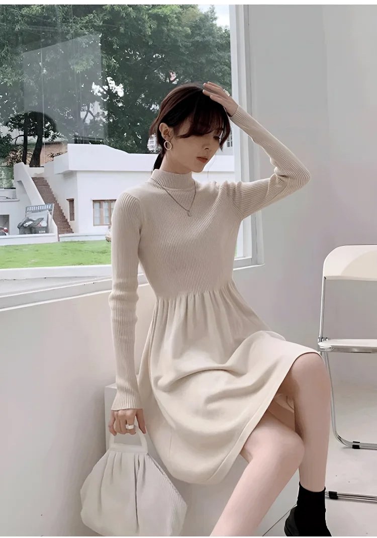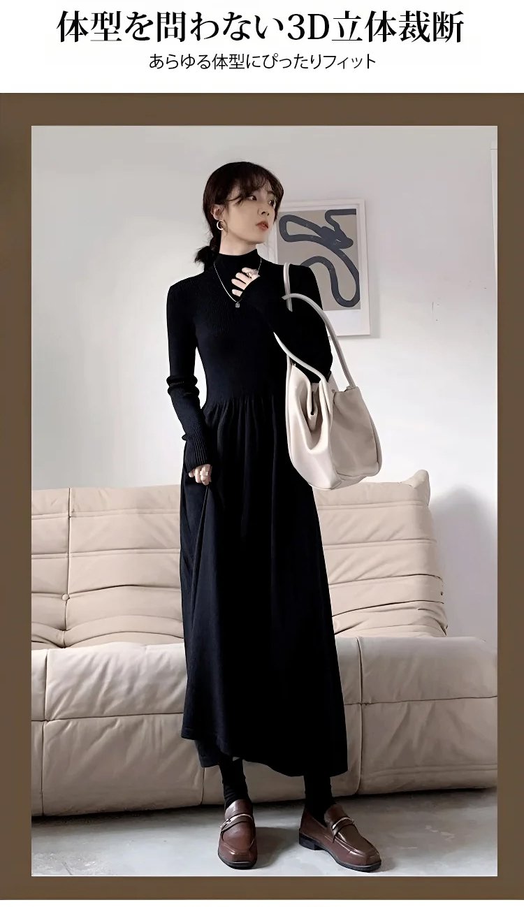 暖かくて軽いハイカシミヤニットワンピースの質感